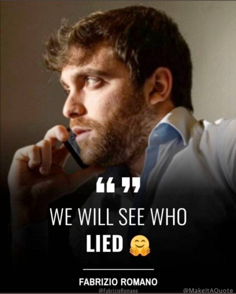 အဲ့တုန်းက သတင်းထောက် ရိုမန်နိုကပဲ ” ဘယ်သူ ညာနေသလဲဆိုတာ ငါတို့အားလုံး တွေ့ကြရမှာပါ ” လို့ ဆိုပြီး အယ်လစ္စတာ လီဗာပူးကိုပဲ ရောက်မယ် ဆိုတဲ့ဘက်က ခိုင်ခိုင်မာမာ ရပ်တည်ခဲ့တာ ဖြစ်ပါတယ်။