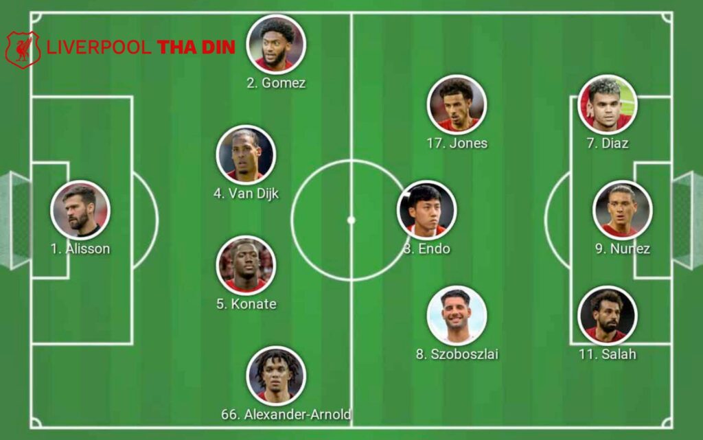 တံကောက်ကြောကနေ သက်သလာစ ဂျိုတာလည်း အရန်စာရင်းကပဲ ပါဝင်ခွင့် ရလာဖွယ် ရှိပြီး ဒါဝင်၊ ဆာလာ၊ ဒီယက်စ်အတွဲကို ပွဲထုတ်မယ်လို့ ခန့်မှန်းရပါတယ်။ နည်းပြကလော့ပ် အနေနဲ့ ဒီပွဲအပြီး ဆာလာကို လက်လွတ်ရမှာမို့ ညာခြမ်း နေရာအတွက် ဂျိုတာကို တည်လာမလား စောင့်ကြည့်ရပါမယ်။