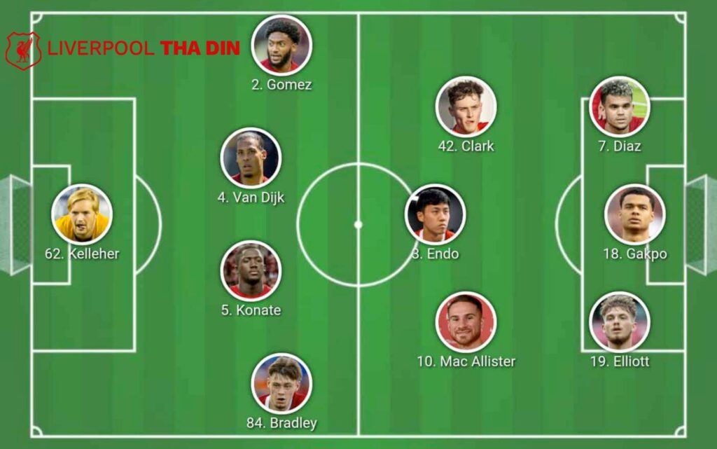 Potential Liverpool lineup to face Forest: Kelleher; Bradley, Konate, Van Dijk, Gomez; Endo, Mac Allister, Clark; Elliott, Gakpo, Diaz
