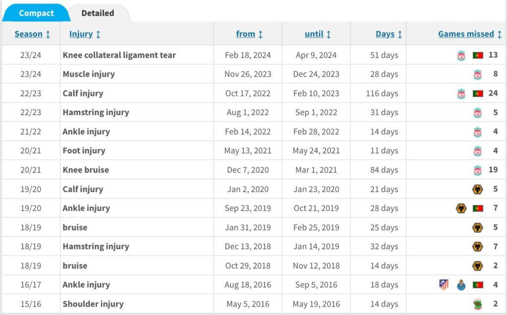 တိုက်စစ်မှာ စွယ်စုံရတဲ့ ဂျိုတာဟာ မကြာခဏ ဒဏ်ရာရလေ့ရှိတဲ့ ကစားသမားပါ။ သူဟာ ဒဏ်ရာ ကင်းနေရင် ကမ္ဘာ့အဆင့် နံပါတ် ၉ သမားဖြစ်ပေမယ့် ပြီးခဲ့တဲ့ ၂ ရာသီအတွင်း သူ့ရဲ့ ဒဏ်ရာမှတ်တမ်းက ချီယေဆာထက် ပိုဆိုးရွားပါတယ်။