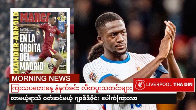 ထရန့် စာချုပ်သစ် မချုပ်တော့ဘူး စပိန်သတင်းတွေ ဆို၊ ပွဲထွက်ခွင့် ယှဉ်ပြိုင်မယ့် မာမာဒီရှီဗီလီ၊ ဇူဘီမန်ဒီကို ထပ်မံ ကြိုးစားဖို့ရှိခြင်းနဲ့ နံနက်ခင်း လီဗာပူး သတင်းတိုများ
