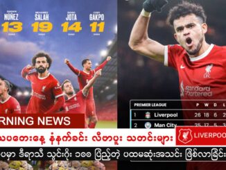 လူတန်တောင်းကို ၄-၁ ဖြင့် အနိုင်ရခဲ့တာကြောင့် လီဗာပူးအသင်းဟာ ဒုတိယနေရာမှ မန်စီးတီးကို ၄ မှတ်၊ တတိယနေရာက အာဆင်နယ်ကို ၅ မှတ် အမှတ်ဖြတ်လာနိုင်ပါပြီ။ လီဗာပူးအသင်းဟာ ဥရောပ ထိပ်ဆုံး လိဂ် ၅ ခုအတွင်း ပထမဆုံးအဖြစ် သွင်းဂိုး ၁၀ ဂိုးနဲ့အထက် သွင်းယူနိုင်တဲ့ […]