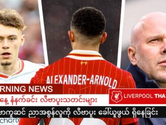 ထရန့်ကို ဆာလာ အပါအဝင် လီဗာပူးအသင်းဖော်တွေ နှုတ်ဆက်နေကြပြီး အနာဂတ်မှာ အောင်မြင်စေဖို့ ဆုတောင်းပေးနေကြပါတယ်။ ထရန့်ဟာ ရီးရဲလ်မက်ဒရစ်မှာ အခွန်ဆောင်ပြီး တစ်ပတ်ကို ပေါင် ၁၅၀၀၀၀ ခွဲ လုပ်ခရမယ့် ၅ နှစ်စာချုပ် ချုပ်ဆိုသွားဖို့ နီးစပ်နေပါပြီ။ လီဗာပူးအသင်းဟာ ထရန့်ထွက်ခွာသွားတဲ့ ညာခြမ်းနေရာ အစားထိုးမှု ပြုလုပ်ရေး […]