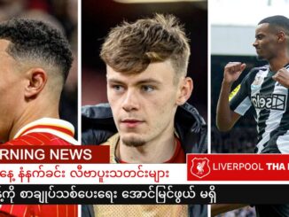 လီဗာပူးအသင်းဟာ ၂၀၂၄ မှာ ဂျာစီအသုံးအဆောင် ရောင်းချမှုကနေ ယူရို ၁၄၆ သန်းရရှိခဲ့ပြီး အင်္ဂလန်ကလပ်တွေထဲမှာ ဂျာစီရောင်းအား အကောင်းဆုံးအဖြစ် မန်ချက်စတာ ယူနိုက်တက်နဲ့အတူ ပူးတွဲရပ်တည်နေပါတယ်။ ဒီအပတ်ရဲ့ ချန်ပီယံလိဂ် အကောင်းဆုံး ကစားသမားနေရာအတွက် လီဗာပူး ဂိုးသမား အယ်လီဆန်ကို ဘောလုံးပရိသတ်တွေက မဲပေးရွေးချယ်ခဲ့ကြပါတယ်။ ပီအက်စ်ဂျီကို ရင်ဆိုင်တဲ့ပွဲမှာ […]