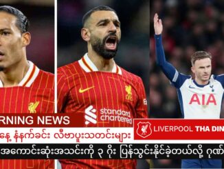လက်စတာကို အိမ်ကွင်းမှာ ၃-၁ ဖြင့် အနိုင်ရတဲ့နောက် လီဗာပူးအသင်းဟာ ဒုတိယနေရာက အသင်းကို ၇ မှတ်ထိ ဖြတ်ထားနိုင်ပြီဖြစ်ပါတယ်။ အဲဗာတန်အသင်းကြောင့် အာဆင်နယ်၊ ချယ်ဆီး၊ မန်စီးတီးတို့ ဆက်တိုက် ရမှတ် ဆုံးရှုံးနေခြင်းကို လီဗာပူးပရိသတ်တွေ အံ့ဩနေကြပါတယ်။ ဒါဘီပြိုင်ဘက်ကြောင့် လီဗာပူးက အမှတ်တွေဖြတ်ထားနိုင်တာပါ။ ဒီရာသီ ပရီးမီးယားလိဂ်ဖလား […]