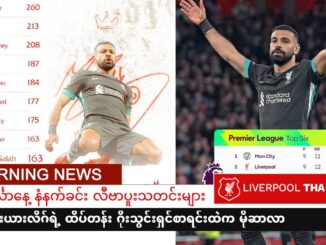 လီဗာပူးအသင်းဟာ အဝေးကွင်းမှာ အာဆင်နယ်ကို ၂-၂ ရလဒ် ကစားခဲ့အပြီး မန်စီးတီးနဲ့ ၁ မှတ်အကွာ အမှတ်ပေးဇယား ဒုတိယနေရာကို ဆင်းပေးလိုက်ရပါတယ်။ လီဗာပူးအသင်းအနေနဲ့ လာမယ့် ပွဲတွေမှာ လက်ရှိ ပုံစံကို ထိန်းသိမ်းသွားပြီး ရလဒ် ဆက်ယူမယ်ဆိုရင် မန်စီးတီးနဲ့အပြိုင် ဖလားစိန်ခေါ်မယ့်အသင်း ဖြစ်လိမ့်မယ်လို့ သုံးသပ်ခံလာရပါတယ်။ ပရီးမီးယားလိဂ် […]