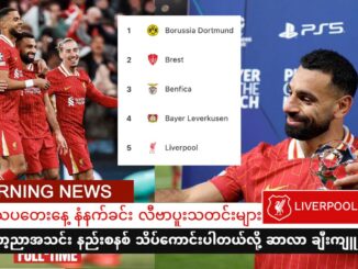 လီဗာပူးအသင်းဟာ အန်ဖီးကွင်းမှာ ဘိုလော့ညာကို မာကာ၊ ဆာလာတို့ရဲ့ သွင်းဂိုးတွေဖြင့် ၂-၀ နဲ့ အနိုင်ရခဲ့ကာ ချန်ပီယံလိဂ် အမှတ်ပေးဇယား အဆင့် ၅ နေရာမှာ ရှိနေပါတယ်။ မာကာရဲ့ သွင်းဂိုးနောက်ပိုင်း လီဗာပူး ကစားပုံ ကျဆင်းသွားပေမယ့် ဆာလာရဲ့ လှပ သပ်ရပ်တဲ့ သွင်းဂိုးဟာ ပွဲကို […]
