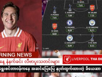 လီဗာပူးအသင်းရဲ့ ချန်ပီယံလိဂ် လူစာရင်းမှာ ဟေး၊ ဂျာရိုစ့်၊ မော်တန်၊ နယ်လို၊ နိုင်ယွန်နီတို့ကိုလည်း ထည့်သွင်းလိုက်ပါတယ်။ ကလပ်ဘက်က လေ့ကျင့်ပေးထားတဲ့ အကယ်ဒမီထွက် လိုအပ်ချက်အရ လူငယ်တွေကိုပါ ထည့်သွင်းထားတာပါ။ တိုက်စစ်သမား ဒီယက်ဇ်ကို သက်တမ်းတိုးဖို့ လီဗာပူးဘက်က စီစဉ်နေကြောင်း သတင်းထွက်နေပါတယ်။ အခုထိတော့ ဆာလာ၊ ဗန်ဒိုက်၊ ထရန့်ကိစ္စ […]