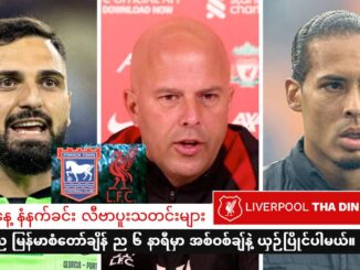 ဒီကနေ့ည မြန်မာစံတော်ချိန် ၆ နာရီမှာ လီဗာပူးအသင်းဟာ ၂၀၂၄-၂၀၂၅ ဘောလုံးရာသီအတွက် ပထမဆုံး အမှတ်ပေးပွဲအဖြစ် အစ်ဝစ်ချ်အသင်း အိမ်ကွင်းမှာ သွားရောက် ယှဉ်ပြိုင်ပါမယ်။ နည်းပြအာနယ် ဆလော့က ရစ်ချက်ဟုချ်ဟာ လူသစ်ခေါ်ယူနိုင်ရေး အားထုတ်နေဆဲပါလို့ အစ်ဝစ်ချ်ပွဲကြိုမှာ ပြောပါတယ်။ The Times သတင်းထောက် Paul Joyce […]
